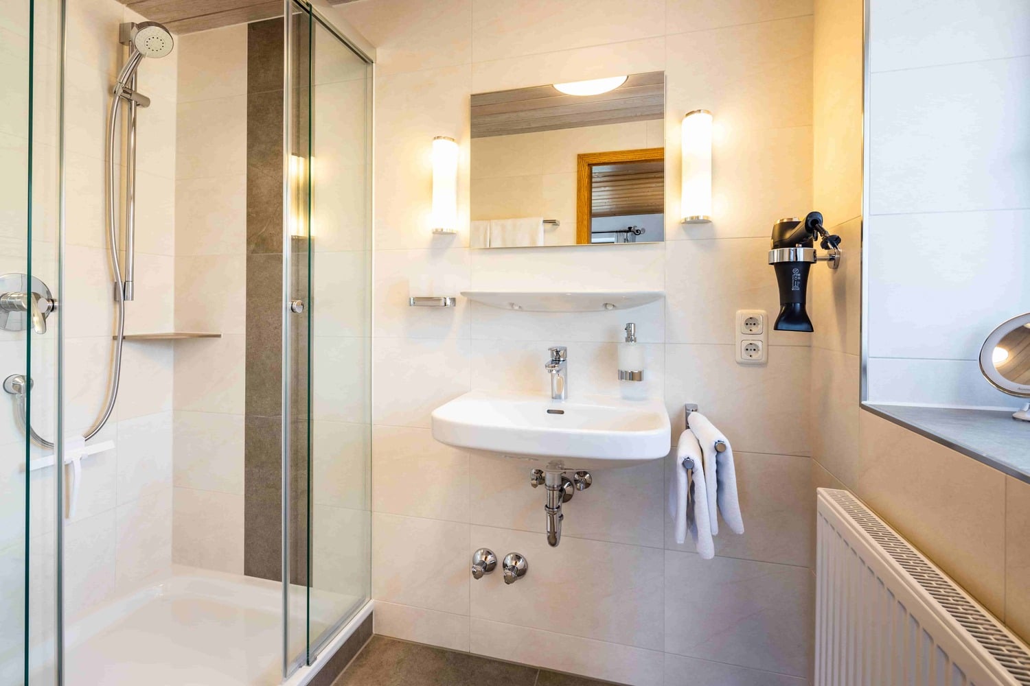 Im Bad mit Dusche/WC stehen für Sie ein Fön, Toilettenartikel und Handtücher bereit.